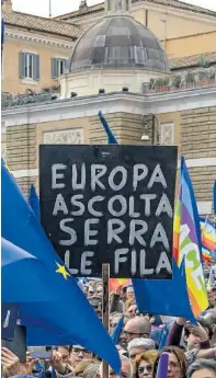 No asisto a manifestaciones. Tengo fobia a las multitudes. Pero a la manifestación de ayer en Roma asistiría; mejor dicho: asistí, aunque solo sea con un vídeo mandado por móvil. El único problema de esa manifestación es que solo ha sido italiana; debefecta ría haber sido europea: debería haber sido descomunal y haberse celebrado en todas las capitales de Europa. Todavía estamos a tiempo de organizar manifestaciones con una bandera única y un solo lema: “Aquí se hace Europa o se muere”.