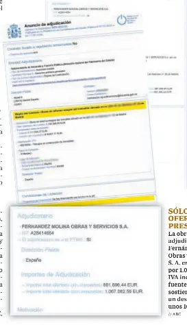 El contrato lo adjudicó la Subsecre-de taría quien de Hacienda depende y la Función Dirección Pública, Genea ral del Patrimonio del Estado, y la haa ejecutado Fernández Molina Obras y Servicios, una empresa líder en grandes reformas y rehabilitaciones y la única que presentó oferta en el concurso público. Cuenta en su porfolio con restauraciones tan emblemáti-cas como la de la Puerta de Alcalá, laa Fuente de Cibeles, el Templo de De-bod o la reforma del zaguán del Ban-co de España.