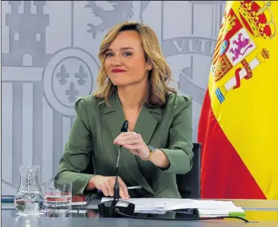 Pilar Alegría, ayer tras el Consejo de Ministros en La Moncloa. XOSÉ HERMIDA,