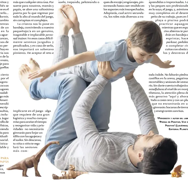 Además, engrasarás tu cerebro con todo tipo de puzles, bloques de encaje y engranajes, pintorreando hasta caer rendido en los soportes más insospechados. Adoptarás, cual actriz secundaria, los roles más diversos a través de cuentos e historias inventadas, y tu memoria mejorará recordando canciones o bien grabando las nuevas letras aprendidas o improvisadas. Los y las peques son profesionales en lo suyo, el juego, y, asimismo, muy completos en el desempeño de su trabajo, pues en la playa o piscina podrás practicar aquagym, mientras que en espacios abiertos te pondrán en bandeja el esprintar, hacer parkour, pedalear o completar circuitos con obstáculos y destrezas de toda índole. No faltarán piedras, castillos en la arena, pegatinas, recortables y sesiones de vestuario. Sin darte cuenta trabajarás el mindfulness al nivel de un monje tibetano, la atención plena del más genuino “aquí y ahora”. Todo a coste cero y con un plus que no encontrarás en un gimnasio: bocanas de tiernas y energizantes sonrisas.