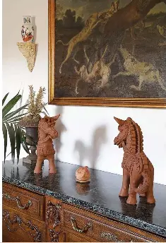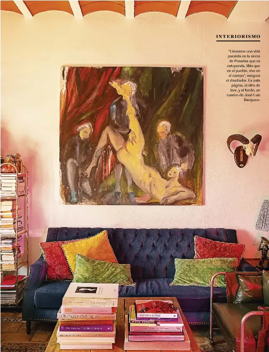 Luego tuvo que ocupar la primera planta, donde hoy un Alejandro más sosegado sigue mezclando vida privada y trabajo, pero con una escalera por medio. “Cierro la puerta y mi casa es muy mía, una burbuja donde soy muy feliz”. Lucio, un braco de Weimar de seis años, es el único que sube y baja escaleras saltándose habitaciones y espacios. Por el día trabajan y por la noche hacen vida de pueblo. “Nos vamos a cenar a El Mesón o a Rogelio, un jamón y un vino. Y llevamos una vida paralela en la sierra de Posadas que es estupenda. Más que en el pueblo, vivo en el campo”.