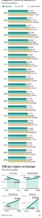 El PIB per cápita se atasca en niveles de 2018 y se aleja de la media europea