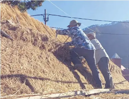 Escobar detalla que de los tres pajares ubicados en el recinto de Pinolere se ha podido actuar en la recuperación integral de uno de ellos que culminará en próximos días. En los otros dos se ha llevado a cabo la reforma y colocación del armazón para la cubierta, y solo se estará a la espera de recolectar la paja vegetal de centeno en el mes de junio y con ello proceder al tapado final, ya que el incendio que sufrió la zona norte afectó al cultivo y no existe suficiente material para realizarlo en estos momentos.