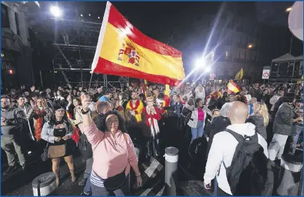 Más de 3.500 personas se han concentran esta medianoche a las puertas de la sede nacional del PP, en la calle ‘Génova 13’, para celebrar los resultados electorales de las municipales y autonómicas, con pancartas como Ayuso te ha votado hasta Txapote.