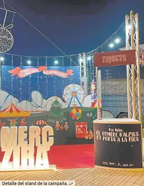 Extras. La Feria de Navidad de Alzira es uno de los principales activos que tiene la ciudad en las fiestas navideñas y también uno de los principales atractivos de la comarca en estas fechas tan señaladas. Por este motivo, el Ayuntamiento de Alzira ha querido unir Comercio y Feria, creando sinergias entre ambos sectores. Bajo el lema ‘Per Nadal: el Comerç d’Alzira et porta a la Fira’, la campaña pretende poner el foco en los visitantes que visitan la ciudad, con el objetivo de atraerlos a realizar sus compras en el comercio local.