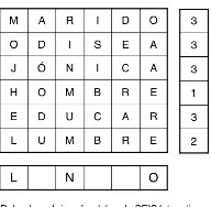 Debe descubrir qué palabra de SEIS letras tiene en común con cada una de las seis palabras anteriores, tantas letras como indica el número que se pone a su lado.